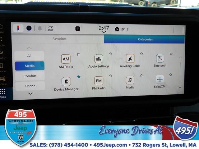 - Radio w/Seek-Scan, Clock, Speed Compensated Volume Control, Aux Audio Input Jack, Steering Wheel Controls, Voice Activation, Radio Data System and Uconnect External Memory Control