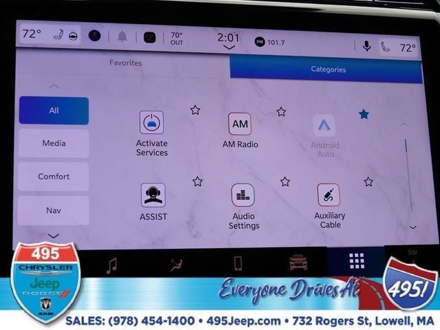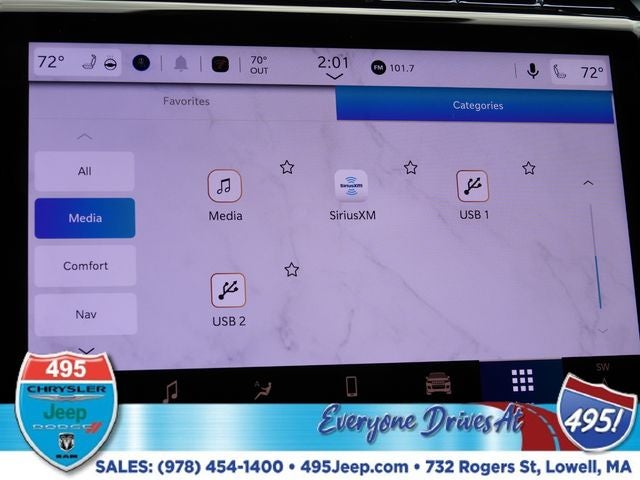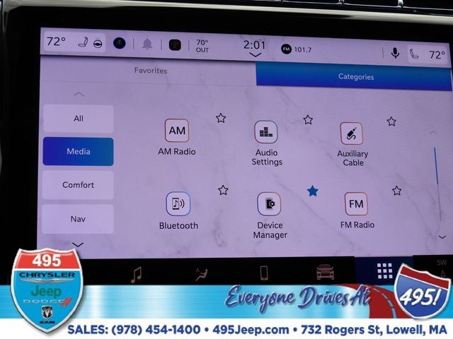 - Radio w/Seek-Scan, Clock, Speed Compensated Volume Control, Aux Audio Input Jack, Steering Wheel Controls, Voice Activation, Radio Data System and Uconnect External Memory Control