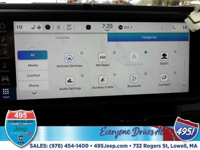 - Radio w/Seek-Scan, Clock, Speed Compensated Volume Control, Aux Audio Input Jack, Steering Wheel Controls, Voice Activation, Radio Data System and Uconnect External Memory Control