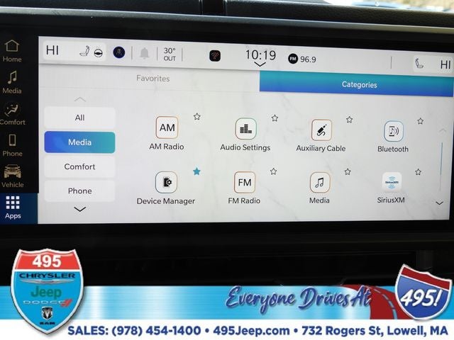 - Radio w/Seek-Scan, Clock, Speed Compensated Volume Control, Aux Audio Input Jack, Steering Wheel Controls, Voice Activation, Radio Data System and Uconnect External Memory Control