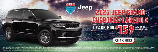 New 2025 Jeep Grand Cherokee Limited Stock #J25301 Vin:. 1C4RJHAG6SC353245 MSRP: $42,375. Model code: WLJP74. All lease payments include, 7,500 miles per year, with $3,995 cap cost reduction plus acquisition fee, and 1st months payment, due at signing. Title, Registration, Tax, Acq fee and $589 Doc Fee are additional. . Lease includes NE Appreciation Bonus Cash Lease includes NE BC SFS Lease Bonus Cash. Lease includes NE Lease Loyalty-Customers who currently have a qualifying Stellantis vehicle ( Jeep Grand Cherokee 4XE or Jeep Wrangler 4XE). Residential restrictions apply see dealer for details. Extra charges may apply at lease end. In stock models only. Same day transaction. Sale ends 2-02-2026